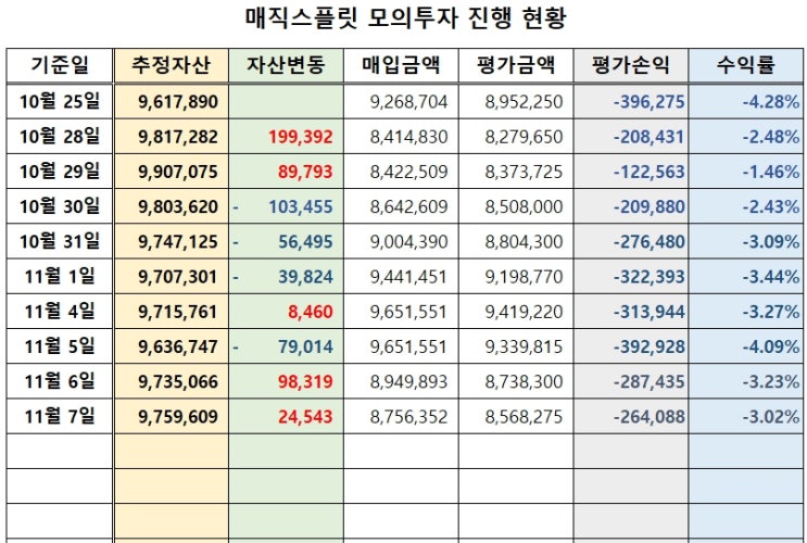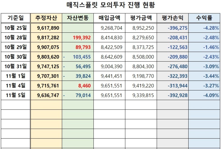 돈나무 만들기 13 - 매직스플릿 모의투자 11/05
