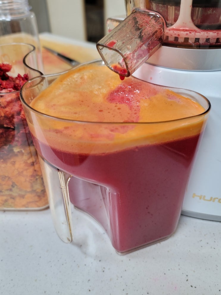 휴롬으로 ABC주스를 만들어 보기. < 포스팅 요약 > *휴롬1세대 사용기: -재탕시 주스에 찌꺼기 같...