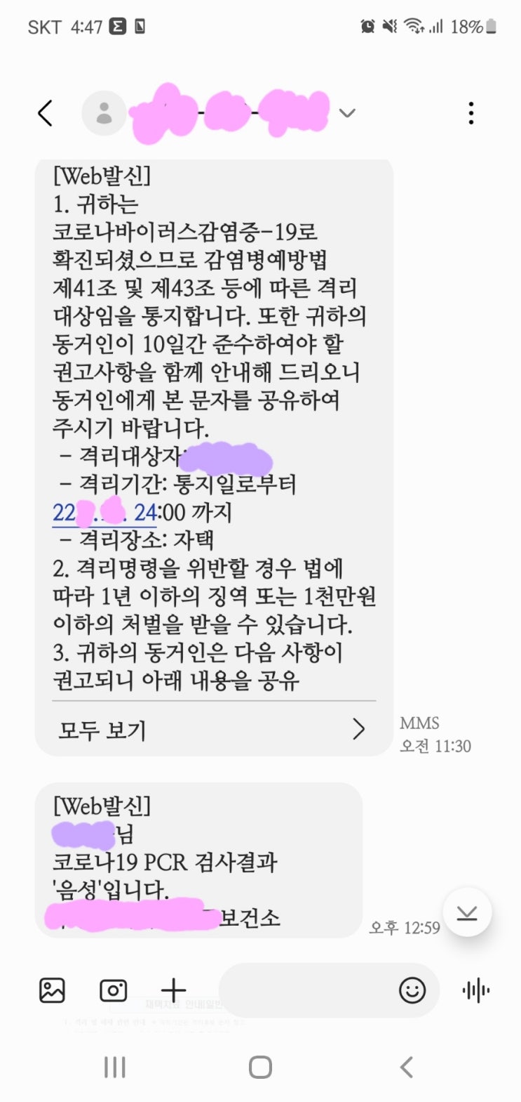 3살.7살.4인가족 코로나 확진기