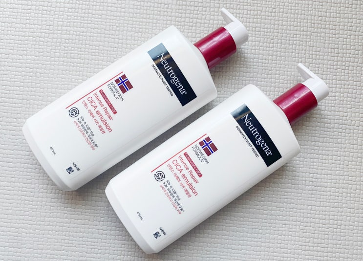 건조한 피부 관리, 보습력 좋은 촉촉한 바디로션 뉴트로지나 인텐스 리페어 시카 에멀전.
