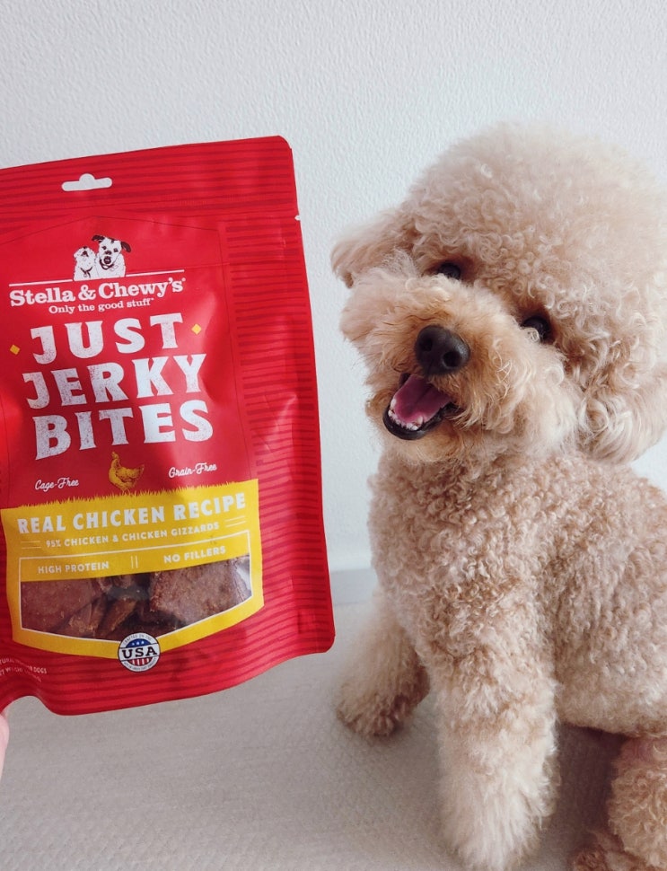 내돈내산 강아지 기호성 좋은 간식 스텔라앤츄이스 저스트 져키 바이트 치킨