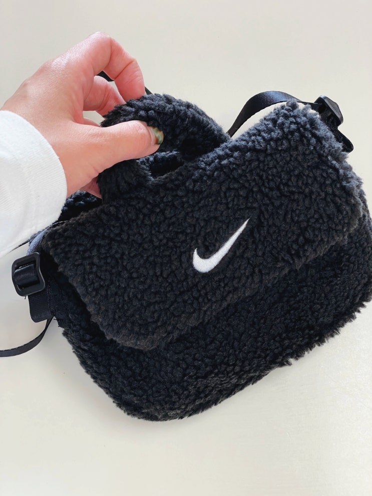 나이키 키즈 크로스바디백 블랙 복실복실한 뽀글이 가방, 나이키 키즈 크로스백 겨울에 들고 다니기 딱 좋...