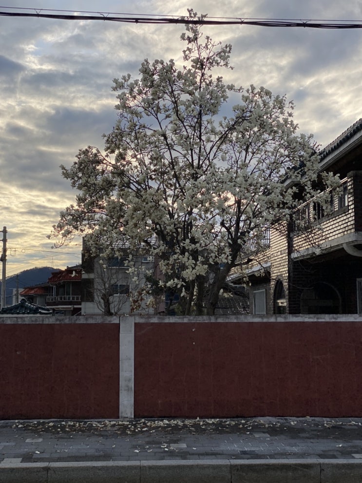 동네 어느집 목련이 너무 예뻐서 저녁에 산책하면서 멀리서 봤다. 딸기, 올해 딸기 참 맛없네 귀엽다. 그래...