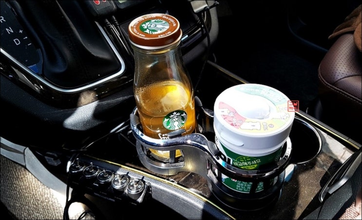 ▼ 현재 1열 콘솔컵홀더에서 사용중인 더블 컵홀더. 1열은 운전석, 동승석 대시보드 에어벤트에 컵홀더가 ...