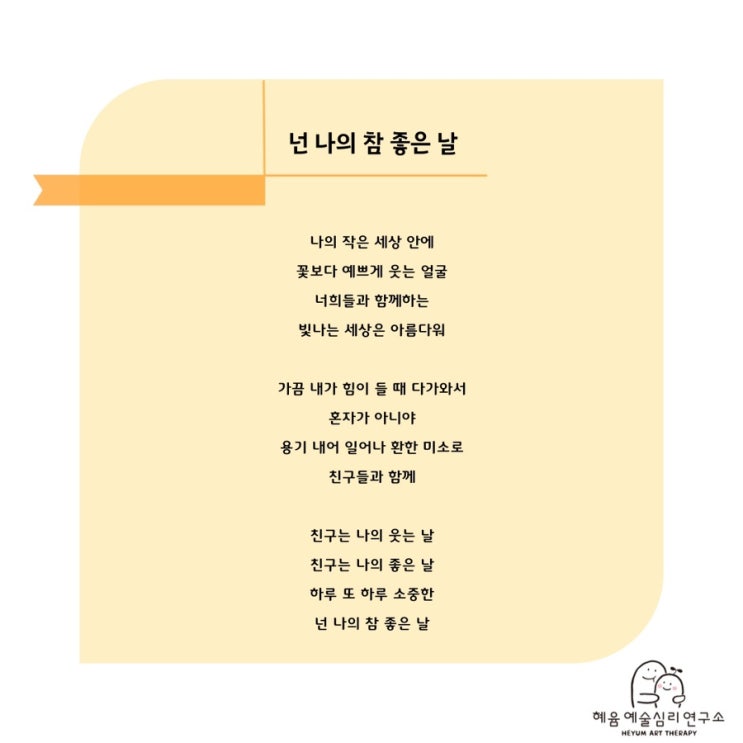넌 나의 참 좋은 날 안녕하세요 혜윰예술심리연구소입니다! 오늘은 가사도 예쁘고 멜로디도 참 좋은 동요를...