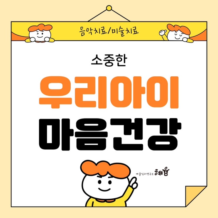 소중한 우리 아이의 마음을 챙기는 방법 안녕하세요 혜윰예술심리연구소입니다. 혜윰은 생각이라는 순우리...