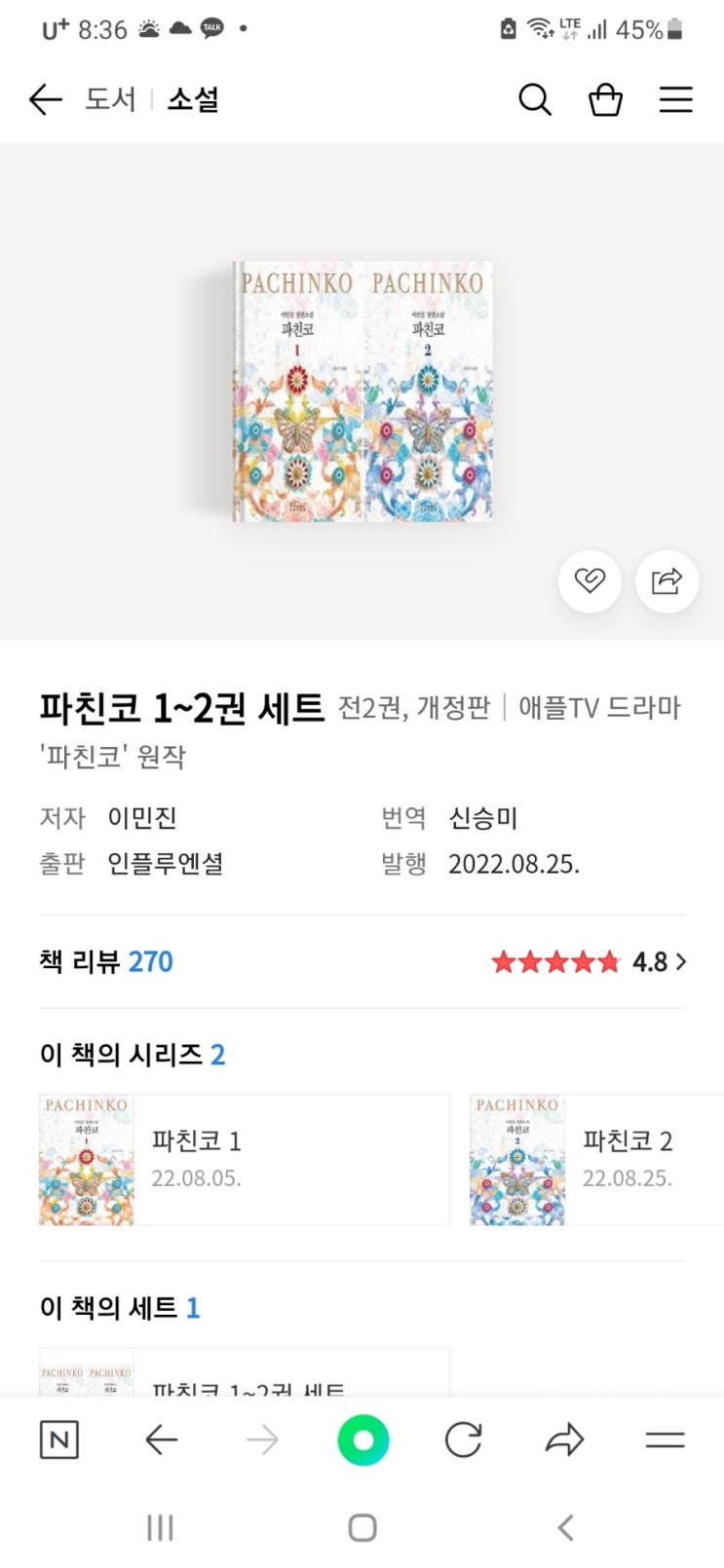이책은 뉴욕타임즈베스트셀러이고 전세계33개국어로 번역되어 세계인에게 감동을 준 한국인 이민자 이민진...