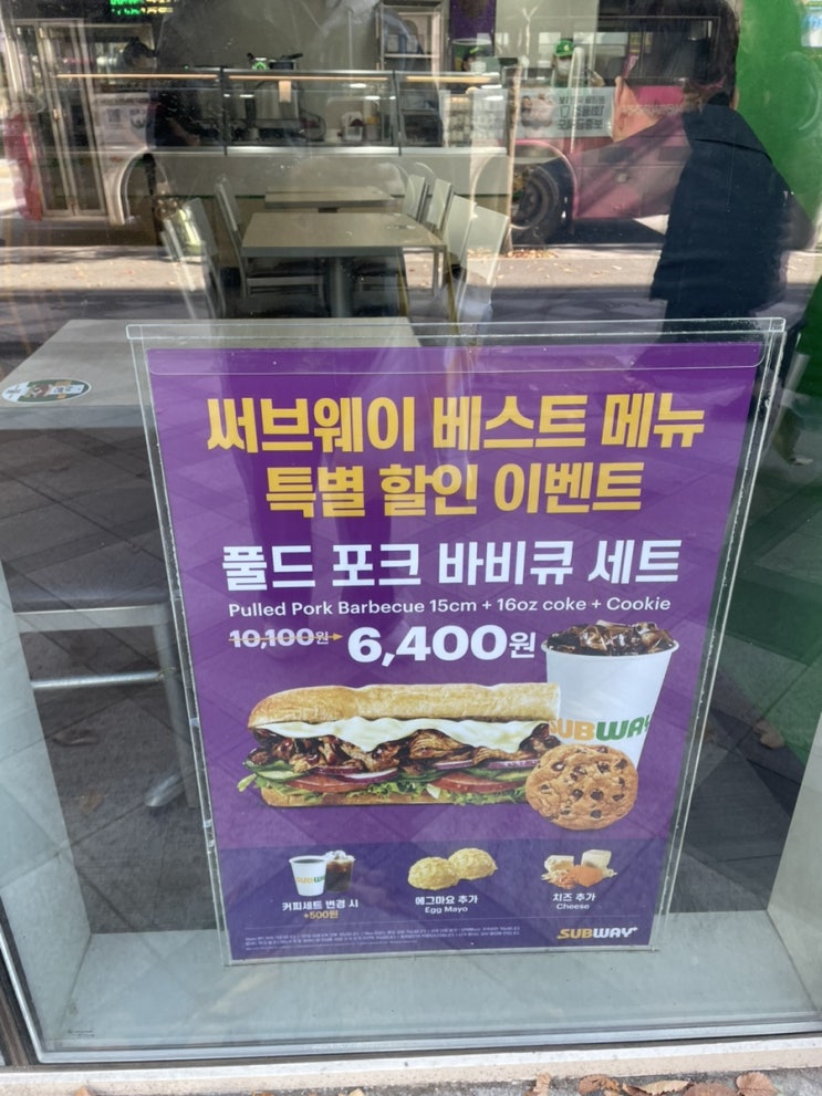 11월 써브웨이 행사 '풀드 포크 바비큐 세트 할인 가격' 및 칼로리