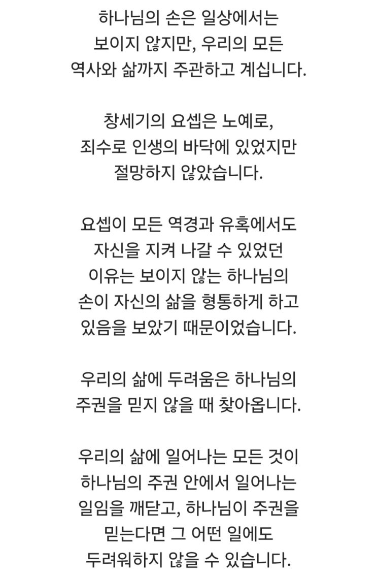 고난 중에 감사와 기쁨이 흘러나오는 이유가 하나님께 집중한 이유 아닐까? 하나님이 강하게 붙잡아 주시기...