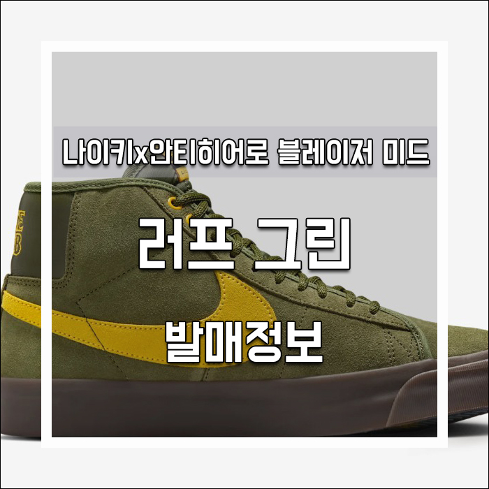 나이키x안티히어로 SB줌 블레이저 미드 러프 그린 앤 아마릴로 발매정보