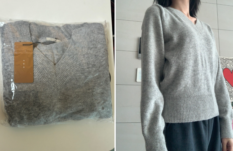 폭스울 캐시미어 브이넥니트 후기 부들부들하고 가볍고 핏도 여유있어서 좋아요 브이넥 시보리 부분이 넓게...