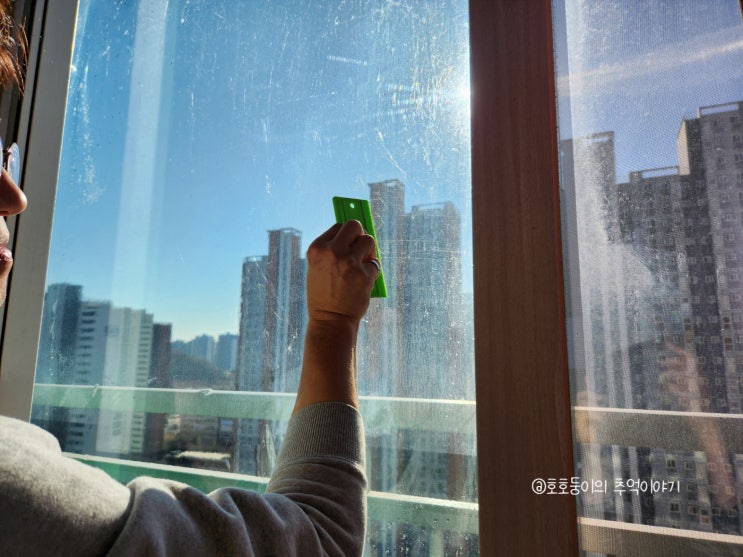 창문 반투명점착시트지 붙이기 외부 가리기