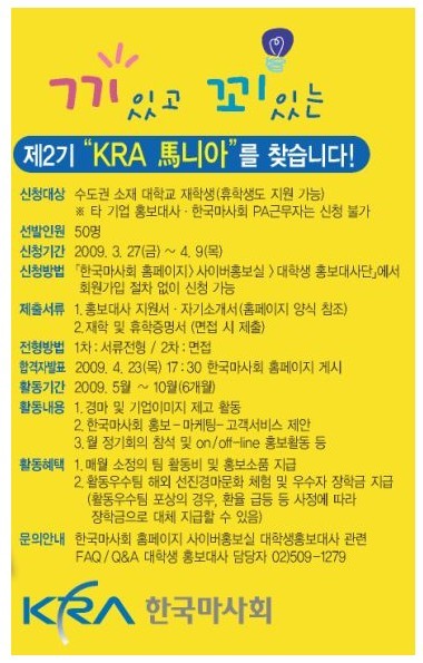 “녹색성장 말산업을 선도하는 일류 공기업 KRA 한국마사회를홍보할 『KRA 馬니아』를 찾습니다. &nb...
