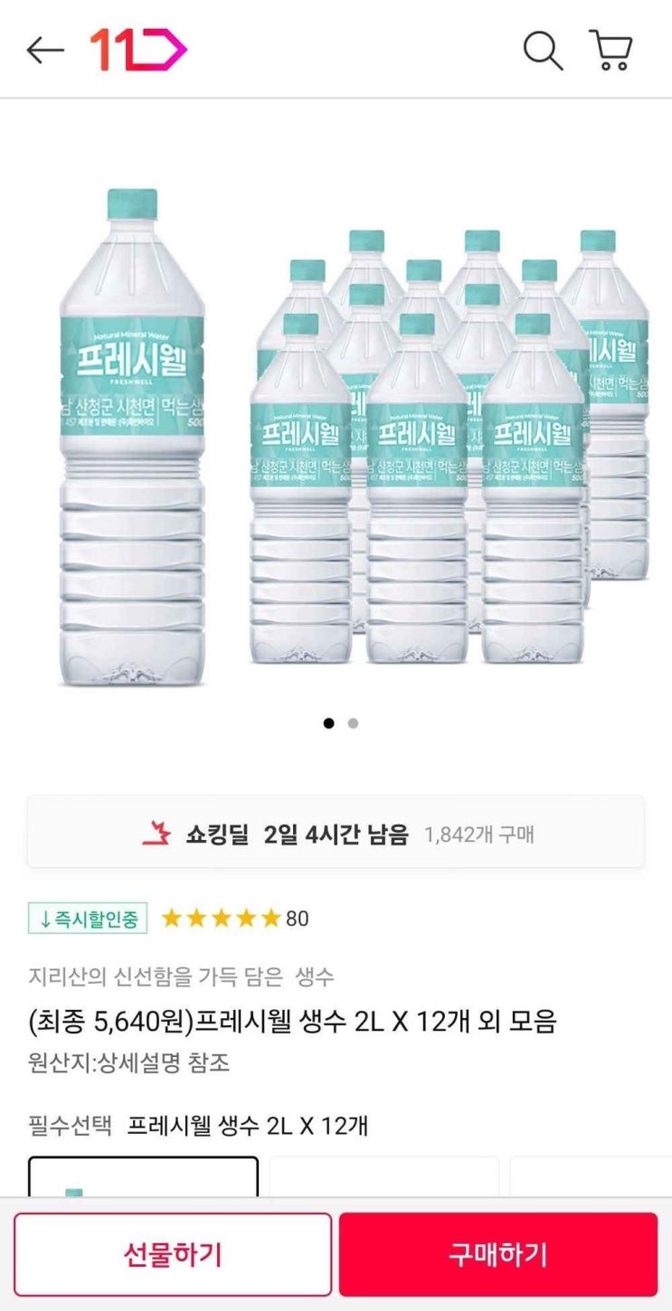 [핫딜] 프레시웰 생수 2L X 12개 (5,640원/무료배송) : 가성비 끝판왕? 꼼꼼 분석 후기