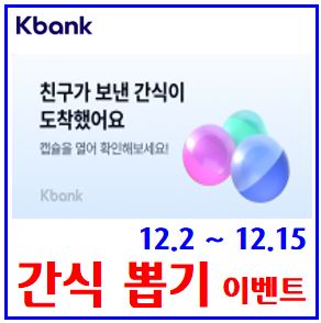 케이뱅크 겨울 간식뽑기 이벤트 (ft. 실시간지급) : 매일당첨, 링크공유, 무제한선물, 1일1회, 캡슐, 랜덤기프티콘, 신규기존고객, 꽝, 케이크, 스타벅스, 메가커피
