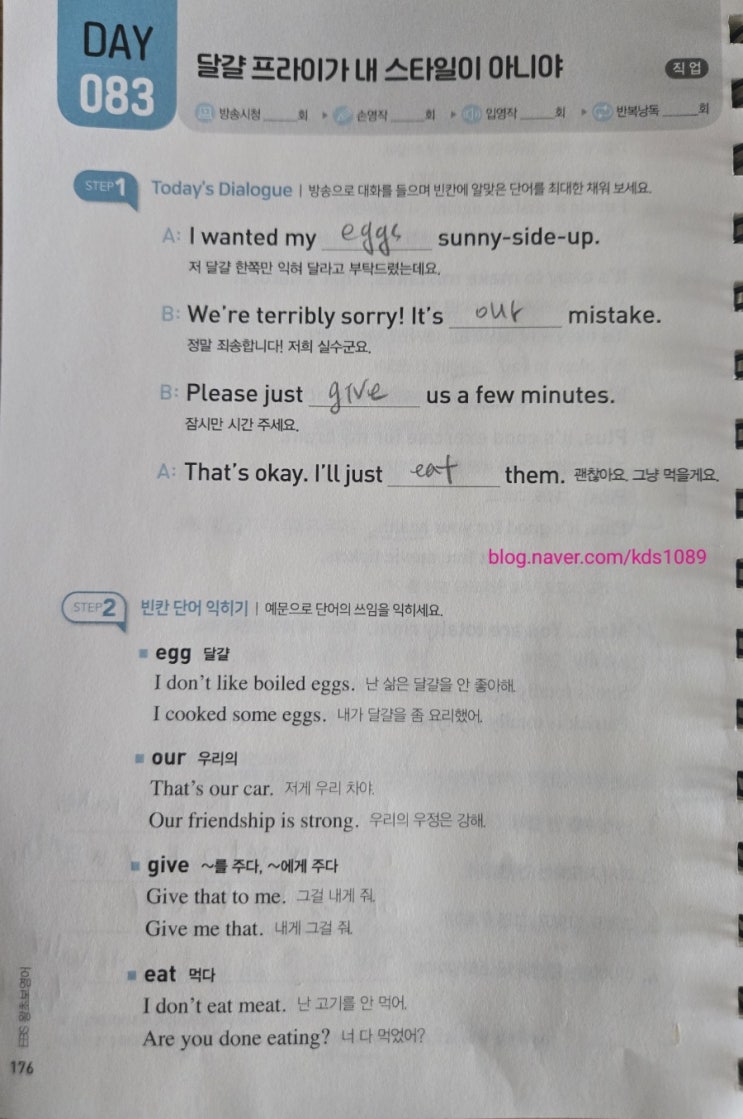 [왕초보영어 2024 하편] Day 083 달걀 프라이가 내 스타일이 아니야