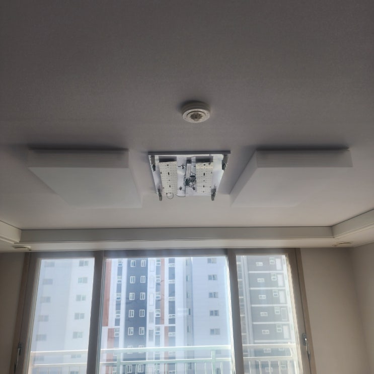 명지국제시도시에 위치한 호반베르디움 즉, 호반 1차 거실 등 교체 작업 후기입니다. 문제점 : 거실 가운데...