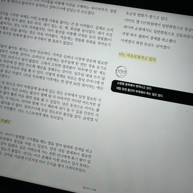 최근에 언니한테도 소설책을 추천해주고 회사 부서장님께도 소설책을 추천해주면서 다시 한 번 느끼게 된 ...