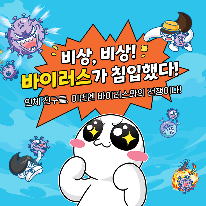 끈질긴 바이러스들을 물리치는 인체 친구들의 대활약! 소맥이의 건강을 지키기 위한 새로운 캐릭터, 백혈구...