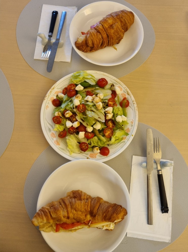 오늘 아침은 크로아상 샌드위치. 엄마표 샐러드 11시에 동생시누이랑 식사약속이 있었어요. 25년전 미국으...