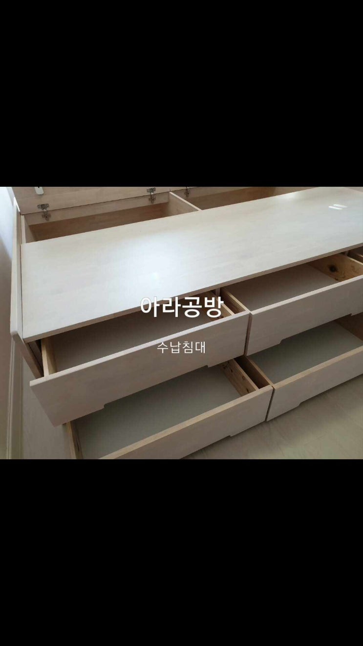 아라공방에서 제작하는 고무원목 100%로 집안의 수납까지 도움을 주는 원목수납침대 입니다 용인전시장 동...