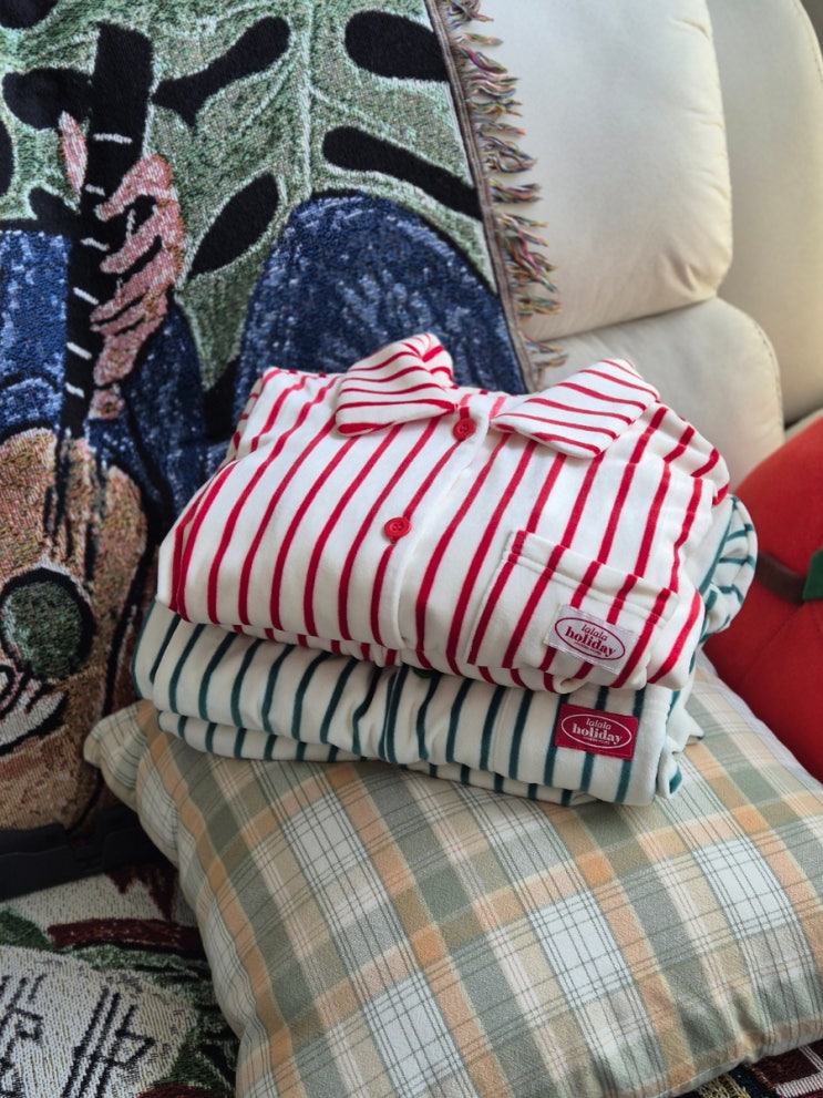 즐소생 - 귀여운 크리스마스 커플 파자마 추천! 모던하우스 밍크 스트라이프 파자마세트 / 커플 잠옷 추천, 겨울 파자마 추천