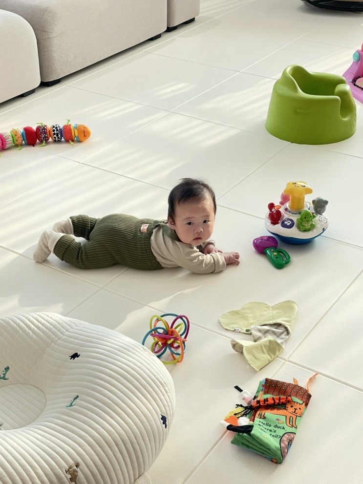 D+121 뒤집기 시작하고나서 기저귀갈이대 최대한 쓰다가 이제 거기서도 뒤집을라고 하고 사이즈도 작아져...