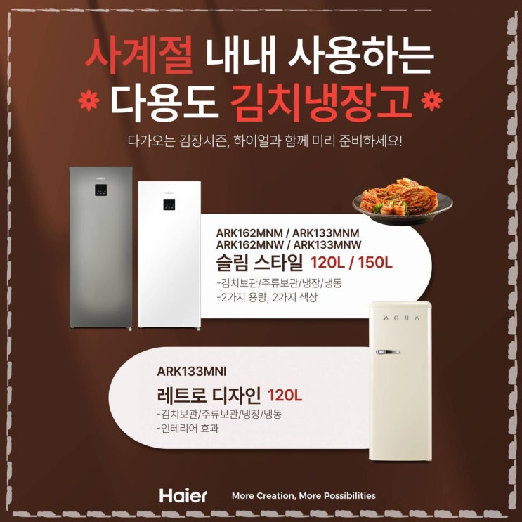 하이얼 김치없으면 안되는 한국인들 맞춤 미니김치냉장고 안녕하세요 잇님들! 추워진 날씨에 감기안걸리게 ...