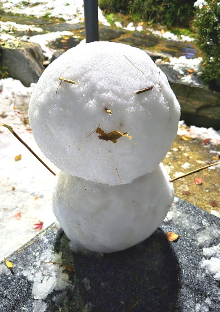 습설이라며 첫 눈이 심하게 내렸는데 하루만에 거의 다 녹았네요. 금방 녹아서인지 동네에 눈사람이 거의 ...