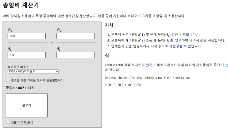 [종횡비 계산기] 가로세로 비율 변경하기 (화면비율계산기)