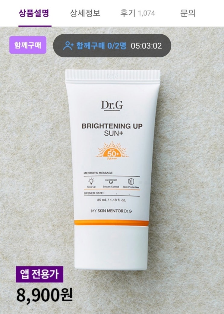 마켓컬리 함께구매 닥터지선크림 8900원 무배 성분도 좋고 해서 자주쓰는 제품이라 구매했어요! 닥터지제품...