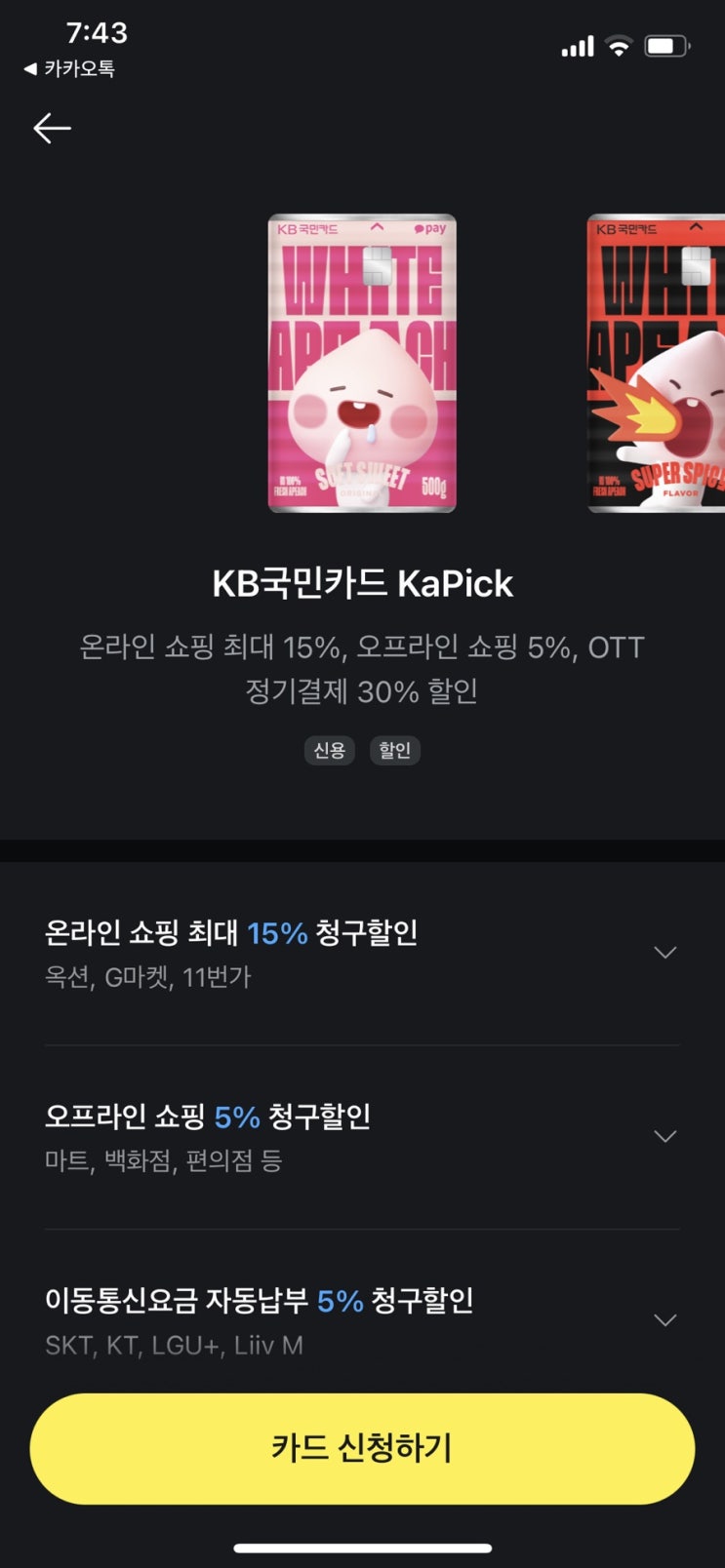 https://m.kbcard.com/z/e284502 모바일카드로발급 혜택1만 누리시죠 고고 나두 발급함
