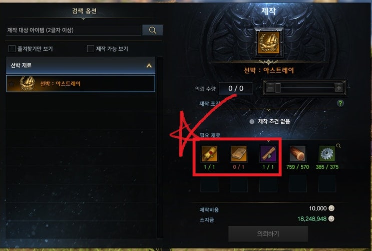 [로스트아크]아스트레이 제작방법, 설계도, 재료