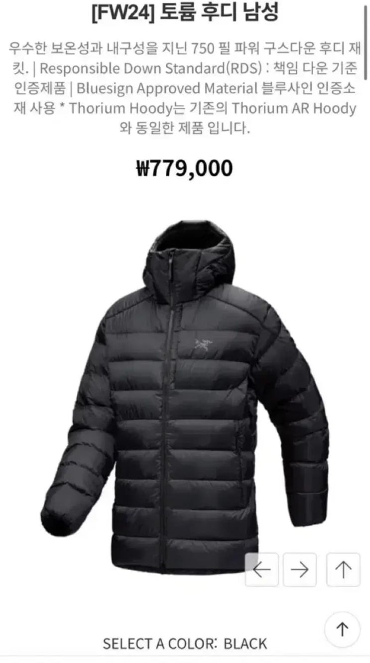 아크테릭스 토륨 후디 남성 겨울 경량 패딩 사이즈 추천