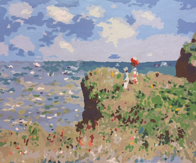 몇년 전 코로나 대유행시기에 피포페인팅을 했던 적이 있다. 그때 모네 - 파라솔을 든 여인을 완성하고 그 ...