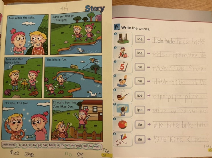 7살 한글 영어 수학 학습 400일차(12/15)