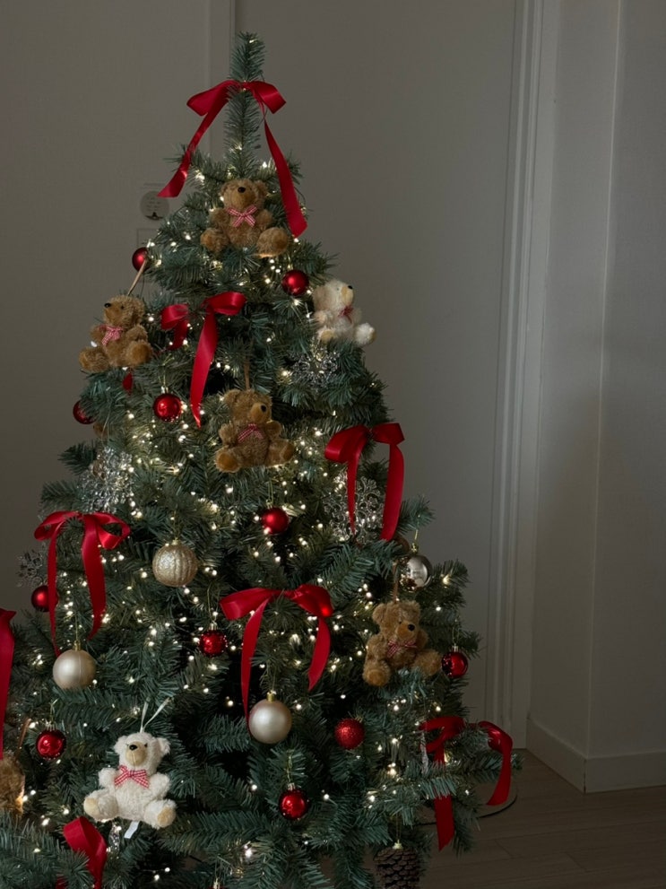 다이소 크리스마스트리 곰인형오너먼트로 테디베어 트리꾸미기 ?