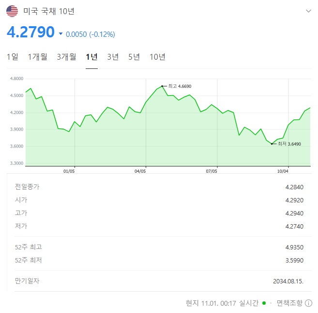 2024년 10월 24일 한국은행 뉴욕사무소에서 미국 재정적자와 미국채금리 동향 및 전망에 대해 정리한 보고...