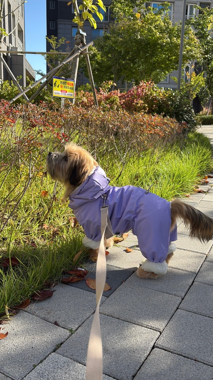 오댕이 견생 첫 패딩! 퍼피엔젤 스노우 패딩 ~ 처음으로 입어본 올인원이라 싫어하지 않을까 걱정했는데 첨...
