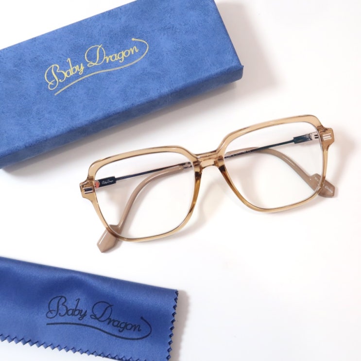 건대안경점 베이비드래곤 DIN 브라운 투명 뿔테안경테, 긱시크 여자 패션 블루라이트차단 안경