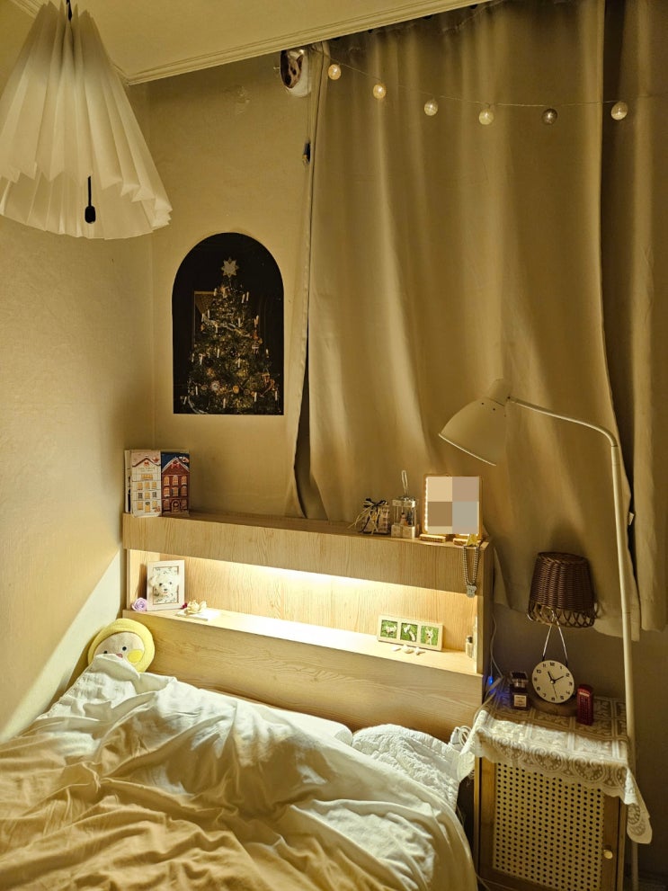크리스마스를 한달 앞둔 요즘! 방 꾸미기 열풍에 크리스마스 소품이 빠질 수 없죠. 침대 머리맡 벽지가 뜯...