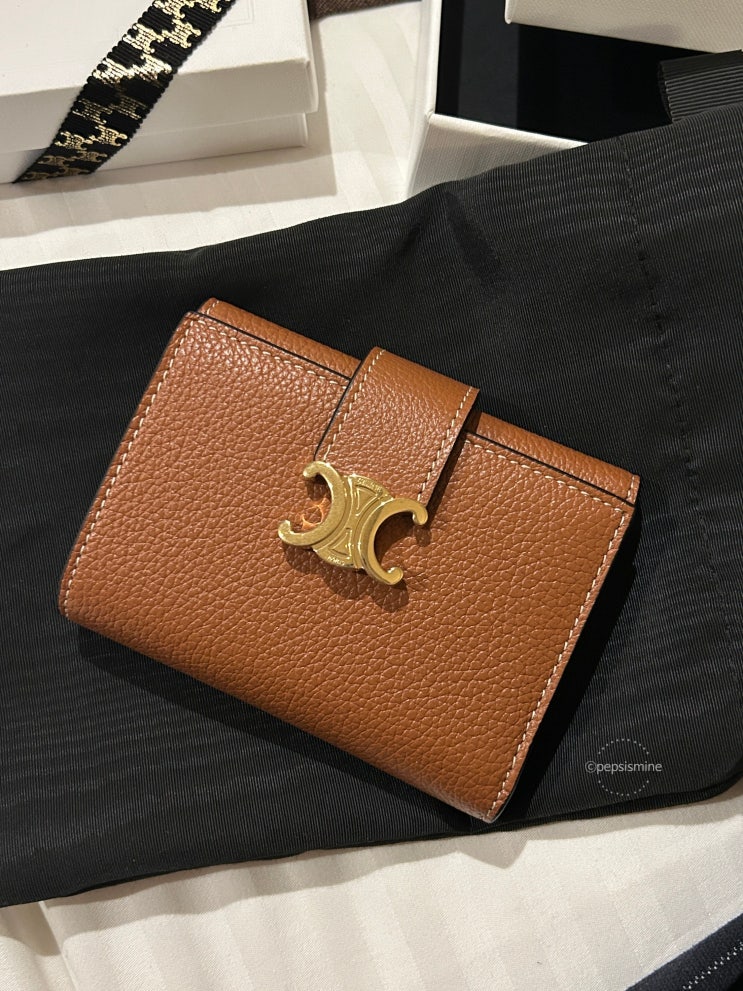 셀린느 지갑 트리옹프 샤이니 카프스킨 브론즈 색상, 가격, 크기