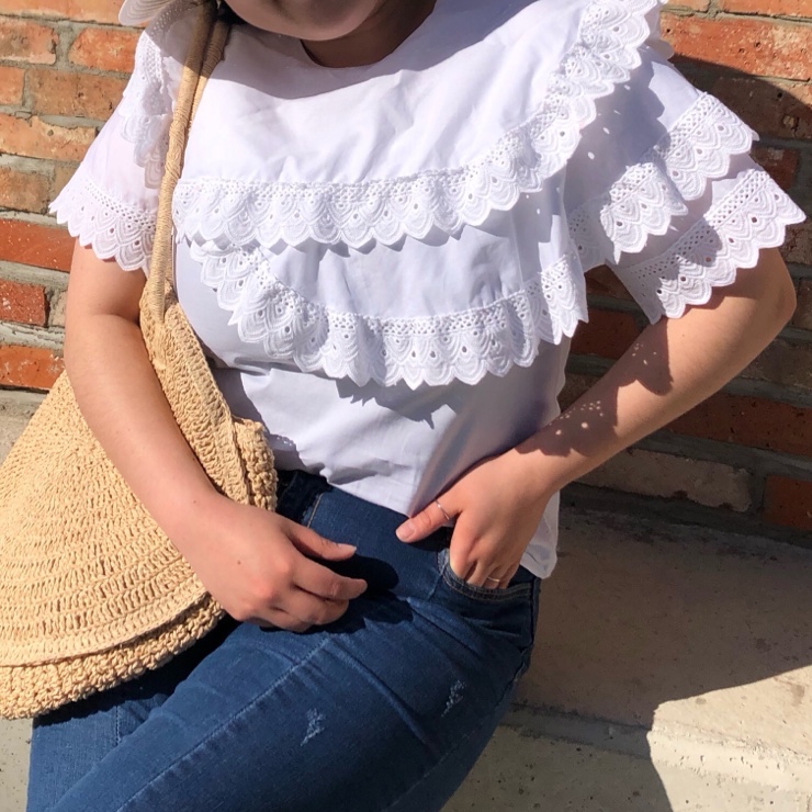 화이트 컬러에 캉캉 포인트가 귀여우면서도 여성스러워 보이는 펀칭 블라우스 소개해드려요 디자인도 이쁘...
