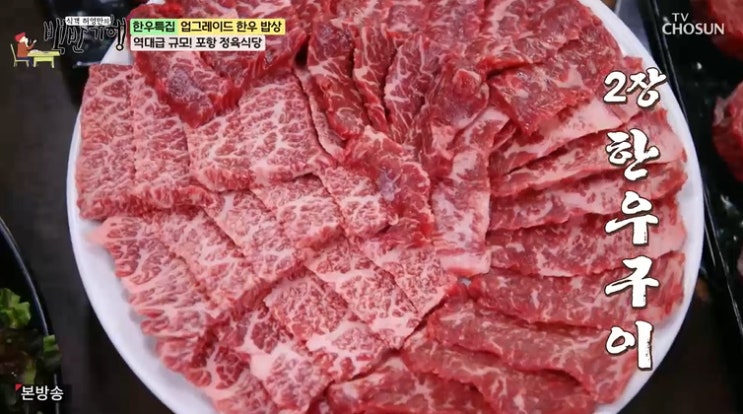 백반기행 포항 정육식당 한우특집 업그레이드 한우밥상 미경산 암소 한우 모듬구이, 한우특수부위, 차돌짜박이 위치