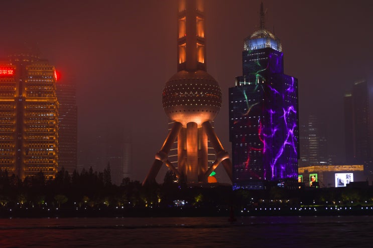 무비자 중국 상해 여행, 야간 황푸강 유람선 크루즈 야경 (비오는 풍경)