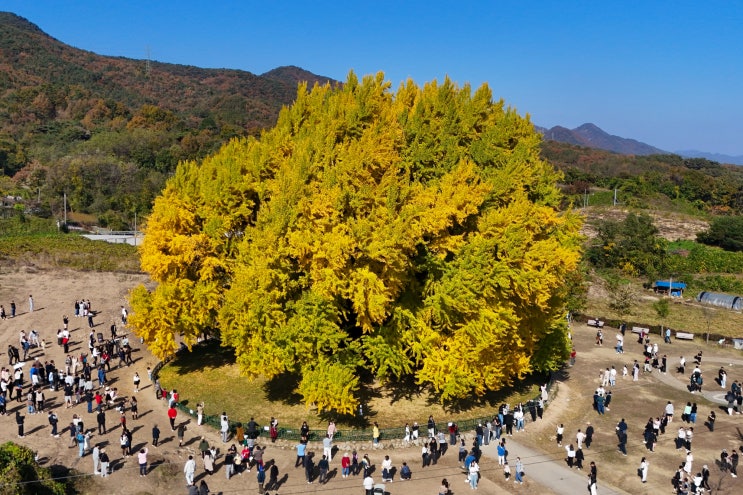한국관광공사와 카카오 모빌리티가 선정한 전국 단풍 명소 27곳 중 하나로 선택된 원주 문막읍 반계리 은행...
