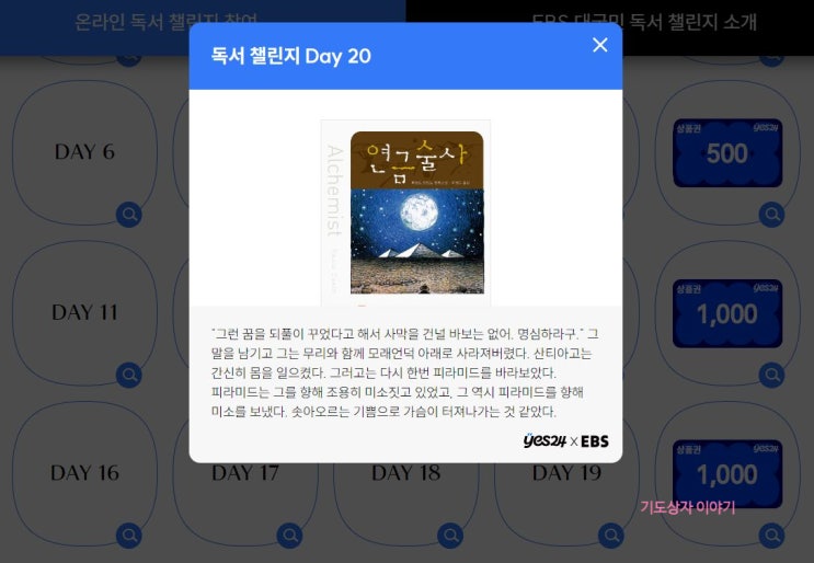 EBSx예스24 독서챌린지 20일 완수 인증^^