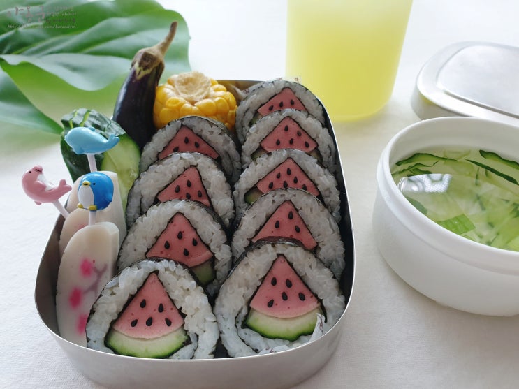 여름도시락 보는 것만으로도 시원! 수박김밥 도시락 만드는법