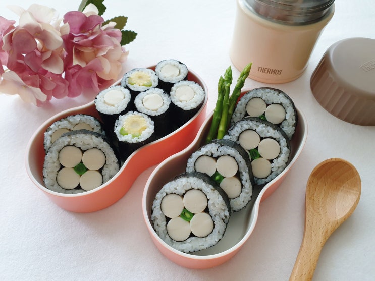 초간단김밥 : 소시지로 만드는 소시지 꽃김밥 도시락 만드는법