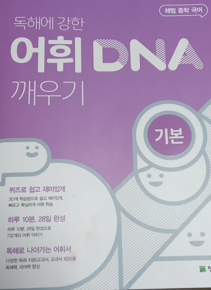 천재교육 / 해법 중학 국어 / 어휘DNA 깨우기(기본) 이번주는 비문학 필수 어휘를 공부하게 되었습니다....